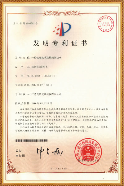 飞鸽公司占地面积20000平方米,拥有3个加工工厂。飞鸽友联吹瓶机拥有13项发明专利,拥有100多个来自不同**的客户。高新技术企业,优秀民营企业,阿里国际站行业**商家,1688超级工厂SKA商家,有ISO质量体系认证,CE认证,TUV等多项国际认证。